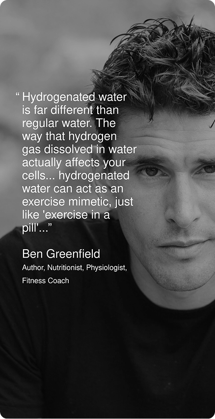 "Hydrogenated water is far different than regular water. The way that hydrogen gas dissolved in water actually affects your cells... hydrogenated water can act as an exercise mimetic, just like 'exercise in a pill..."